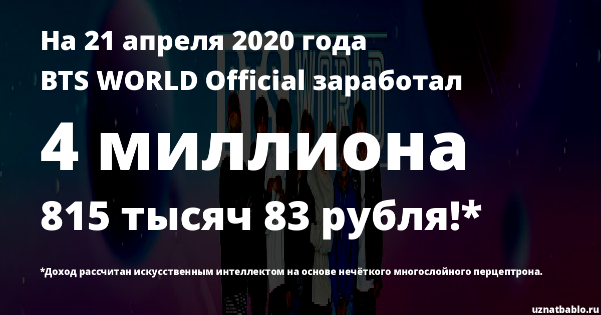 Сколько BTS заработали на продаже билетов: Корея Сеул — 14 000 000 долларов (2 шоу) Соединенные Штаты Лос-Анджелес, Калифорния — 10 000 000 долларов (4 шоу) Вместимость (концерт) = 19 500Окленд, Калифорния — $ 2,500,000 (1 шоу) Форт-Уэрт, штат Техас — $ 5,000,000 (2 шоу) Ньюарк, Нью-Джерси — $ 5,000,000 (2 шоу) Чикаго, Иллинойс — 5 000 000 долларов (2 шоу) Канада Гамильтон, Онтарио — 7 500 000 долл. США (3 концерта)