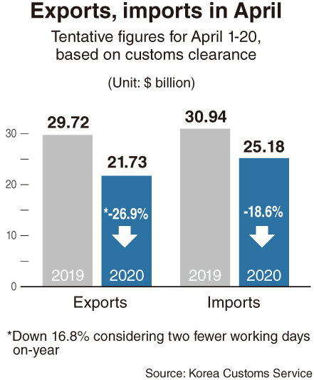 Согласно данным Таможенной службы Южной Кореи, в первые 20 дней апреля экспорт страны сократился на 27 процентов по сравнению с аналогичным периодом прошлого года.