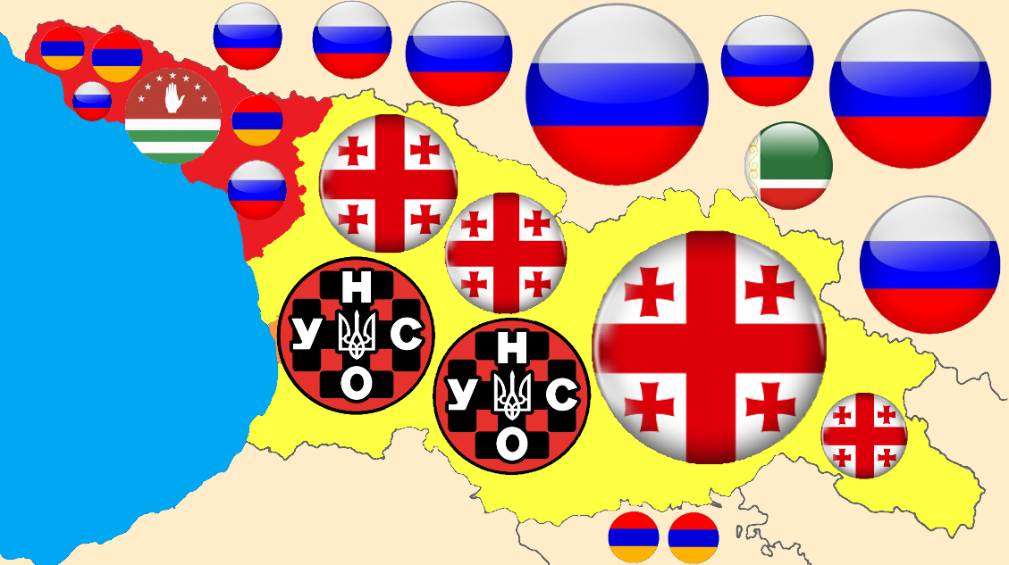 В столице Грузии, в центре Тбилиси расположена площадь Героев и Мемориал павших за независимость этой страны. Там встречаются не только грузинские фамилии, а так же и украинские, такие как: Сергей Обух, Роман Галазика, Владимир Крутик, Леонид Ткачук, Роман Музыка, Олекса Довгий, Владимир Биль. В 1992-1993 г. абхазские сепаратисты, получив от Кремля полную военную поддержку и первыми обозначив свой дом в статусе республики, развязали войну в отношении грузин, проживающих на территории Абхазии, начался геноцид грузинского народа. В свою очередь Грузия, собрав все силы, начала наступления путем взятия города Сохуми( Сухум) с целью прекращения истребления коренного народы страны и смены власти на прогрузинскую. Вести быстро разошлись по всему постсоветскому пространству и миру. УНА-УНСО (Украинская Национальная Ассамблея — Украинская Народная Самооборона) опубликовало заявление, которое заканчивалось словами «Сегодня Абхазия и Южная Осетия в Грузии – завтра Крым в Украине». Украинские