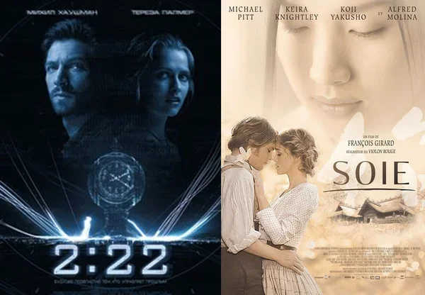 2:22 Шёлк 2:22 по полудню. Безоблачное небо внезапно озаряет мощная световая вспышка. Приборы навигации выходят из строя. Два пассажирских самолета неизбежно должны столкнуться в воздухе. В последнее мгновение опытный авиадиспетчер Дилан успевает развести маршруты, но с этой минуты его жизнь не может быть прежней. В поисках страшной правды Дилан знакомится с таинственной девушкой по имени Сара, вместе с которой он открывает зловещую тайну пересечения судеб… Михель Хаушман Тереза Палмер "Шёлк" Молодой женатый француз Эрве Жанкур занимается контрабандой тутового шелкопряда. Он отправляется из Франции в Японию, чтобы забрать секретный груз. В Японии он знакомится с красивой девушкой из Европы, любовницей местного богача. Страсть к красавице охватывает Жанкура. Не имея возможности говорить на одном языке, они общаются с помощью писем. Но начинается военная интервенция. Несмотря на это, их чувство не гаснет, и об их отношениях