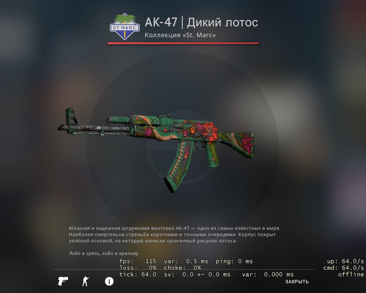 АК-47: 1.Дикий лотос (закалено в боях). 2.Топливный инжектор (закалено в боях). 3.Азимов (закалено в боях) . 4.Неоновый гонщик (закалено в боях) . 5.Поверхностная закалка (закалено в боях) . 6.Императрица (закалено в боях) . 7.Пустынный повстанец (закалено в боях) . 8.Неоновая революция (закалено в боях) . 9.Орбита, вер. 01 (закалено в боях) . 10.Колымага (закалено в боях) . М4А4: 1.Император (закалено в боях) . 2.Облом (закалено в боях) . 3.Преданный паладин (закалено в боях) . М4А1-S: 1.Золотая спираль (закалено в боях) . 2.Механо-пушка (закалено в боях) . 3.Опустошитель (закалено в боях) . 4.Хрусталь (закалено в боях) . 5.Василиск (закалено в боях) . AWP: 1.Принц (закалено в боях) . 2.Медуза (закалено в боях) . 3.Распространение (закалено в боях) . 4.Азимов (закалено в боях) . 5.Мортис (закалено в боях) . Desert Eagle: 1.Пищаль (закалено в боях) . 2.Код красный (закалено в боях) . 3.Дракон-предводитель (закалено в боях) . 4.Механо-