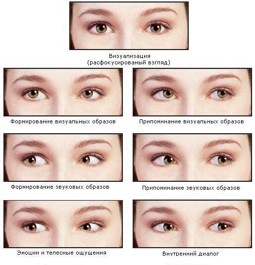 Человек устроен так, что своими глазами он спокойно выдает нам правду. Психологи заметили, что лгущий человек отводит глаза от собеседника влево, а потом опускает их вниз. Так он пытается подобрать нужные слова или выдумать образы, чтобы солгать Если вы заметили такое, то у вас есть все основания пологать, что человек лжёт, но они не стопроцентные. Для полной уверенности необходимо продолжить наблюдение Если в ходе разговора глаза собеседника поднимаются вверх, значит, он пытается вычленить и описать образы из визуальной или зрительной памяти. Если же он поворачивает голову в правый или левый бок, значит, работает с аудиальной или слуховой памятью. Если Ваш собеседник опускает голову вниз, значит, он хочет сконцентрироваться и тщательно контролирует всё сказанное. Следите за ним внимательно, именно в этот момент он может начать выдумывать и озвучивать ложь. Важно зафиксировать первую реакцию собеседника на заданный ему вопрос. Если при этом он начинает закатывать глаза вверх и вправо