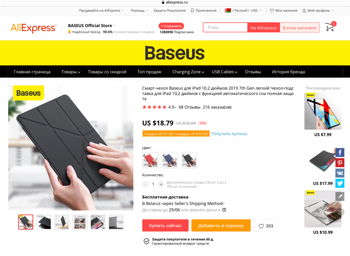 Чехол от китайской компании BASEUS. Три цвета на выбор: красный, чёрный, синий. Следующий чехол от компании Nillkin. Чехол выполнен с защитными вставками. Если вам нужен чехол без складной крышки, то это отличный и дешёвый вариант. Проще, дешевле такой чехол предлагает продавец. Защитный, устойчивый, удобно и безопасно держать одной рукой, вести онлайн трансляцию в общем универсальный чехол. Офисный стиль чехла, универсально подойдёт для всех стилей жизни. Космос? Париж? Стикеры? Это все есть у данного продавца. Всё хорошо, но некуда деть Apple Pencil? Держите такой вариант. Любите кожаные вещи, в одном лоте сумка и чехол из бычьей кожи. Мягкая переноска для вашего яблочка. Против кожаных изделий или дороговато, то этот вариант для вас. Для того что-бы грамотно делать свои покупки делайте её при помощи кэшбэка от сервиса LetyShops. Регистрируйтесь по данной ссылке и покупайте с умом.