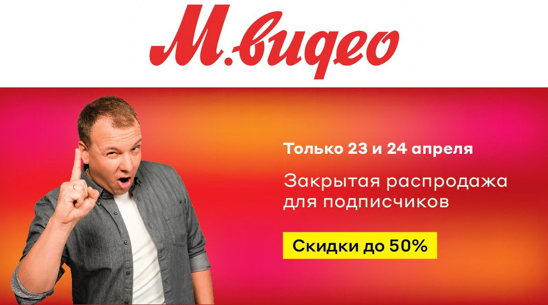 Срочно в номер! М.Видео вслед за Эльдорадо запустил закрытую распродажу. Только 2 дня у вас есть отличная возможность сэкономить до 50% на электронике и бытовой технике по промокоду. В акции участвует более 200 товаров, среди которых вы точно найдёте что-нибудь полезное. Советуем начать смотреть каталоги уже сейчас, пока не поздно! А лучшие предложения смотрите на нашем втором канале Молния. Доступ в канал через бота: http://linktg.ru/MolStartBot. Подписывайтесь! ;)