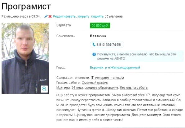 Смешные товары и услуги продавцов,будешь пол часа смеяться Ищу работу программистом Продается ВАЗ 2114 хетчбэк Бентли Континенталь подарить сможете? Чувак не ожидал такого поворота Продаю футбольную команду Ботинки призрачного гонщика Когда покупал, думал нормальная машина Продам гараж с евроремонтом Рука терминатора Доем за вас салаты после праздников