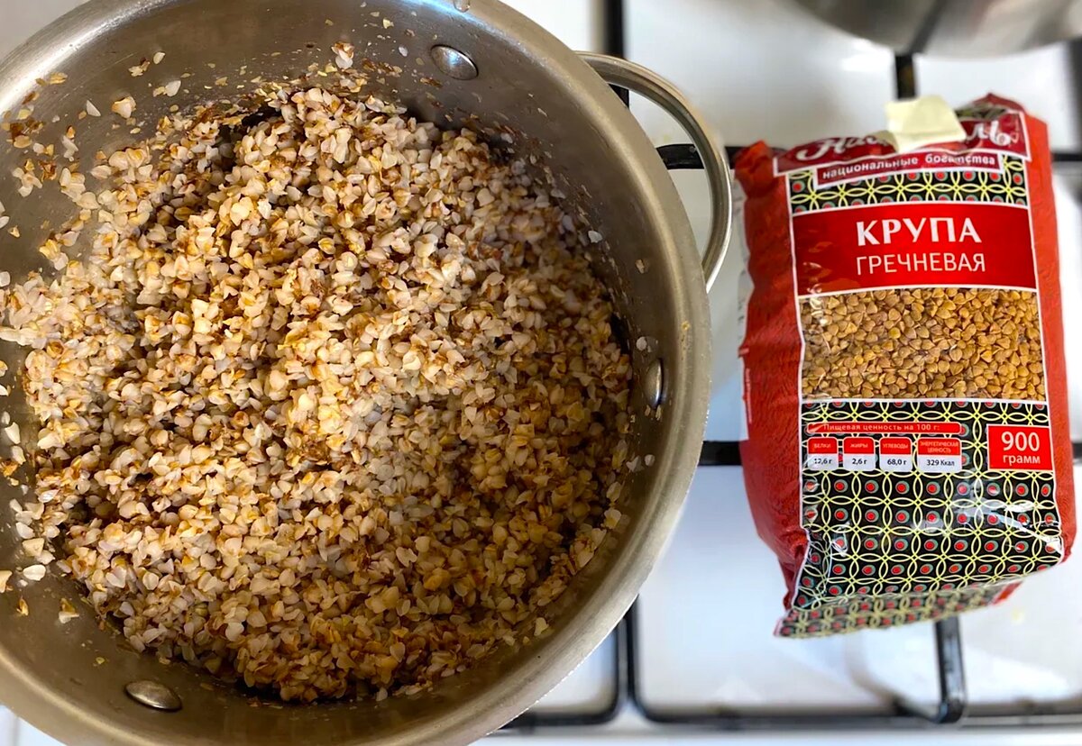 Отвариваем гречку по инструкции. Я варил минут 15. В итоге, она должна получится такая разваренная и мягкая.