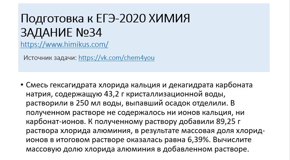 Решаем нестандартные 34 задачи. Два кристаллогидрата и концентрация хлорид-ионов в одной задаче!
