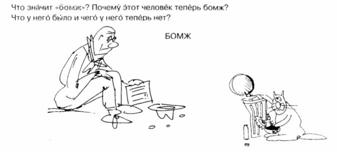 Самый главный вопрос бытия - что значит бомж? А еще соискателям на должность русского сразу дают понять, что с приютами для бездомных животных в России, в отличие от Германии, тоже шляпа. И бомжей на картинке двое.