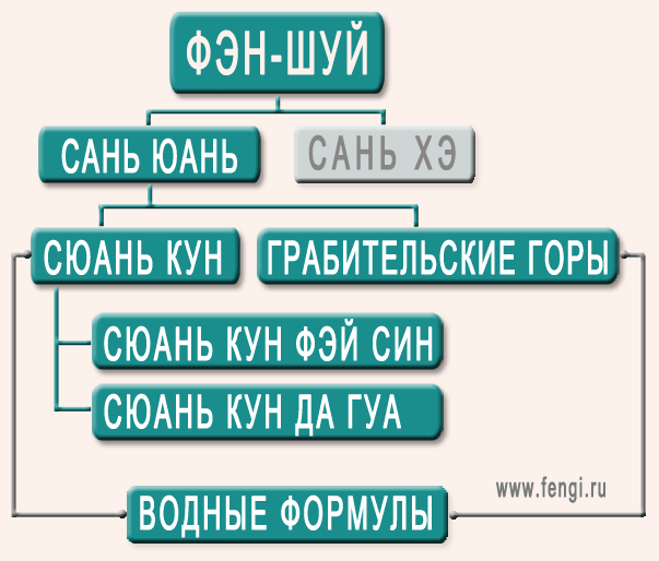 Направление Сюань Кун фэн-шуй тоже имеет несколько ответвлений. Это: