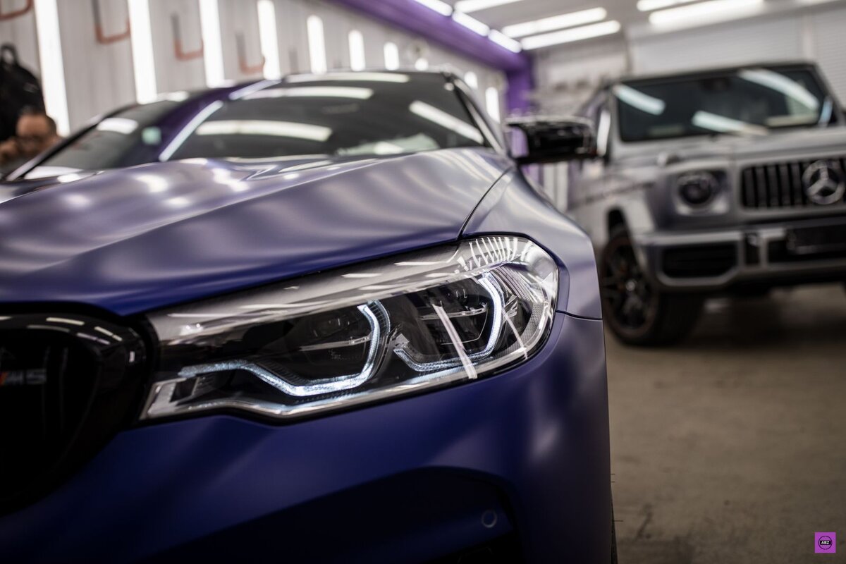 Привет всем! С вами АвтоБезЗабот и, как всегда, мы рассказываем о защите автомобилей. Сегодня подготовили проект о BMW M5 Competition. Седан интересного синего цвета, изначально был в матовом кузове, поэтому владелец авто решил защитить лакокрасочное покрытие матовой антигравийной пленкой. На заметку. Если вы решили купить автомобиль в матовом цвете, можно не переплачивать за дополнительную опцию дилеру. Защита кузова матовой антигравийной полиуретановой пленкой стоит дешевле и имеет двойную выгоду: защита и стайлинг. Немного о заряженном седане Серия M была создана для того, чтобы вывести на дороги общего пользования технологии автоспорта. Двигатель M TwinPower Turbo обладает настолько высокой мощностью (625 л.с. и 750 Нм), что все страстные гонщики по достоинству оценили эти модели. Еще бы, до первой “сотни” седан разгоняется за 3,3 секунды. Чтобы автомобили BMW M могли обеспечить достойный уровень динамики и точности, инженеры с особой тщательностью подбирали подвеску, коробку пер