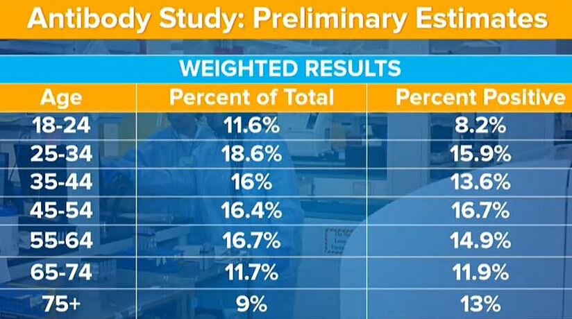 Более пятой части жителей Нью-Йорка дали положительный результат на антитела к коронавирусу в исследовании на случайной выборке, что означает, что могут быть заражены целых 1,8 миллиона человек, а уровень смертности в ПЯТЬ РАЗ больше, чем грипп Среди людей в возрасте 45–55 лет 16,7% дали положительный результат, а 15,9% людей в возрасте 25–34 лет дали положительный результат Остается неизвестным, насколько он точен. В то время как частные компании указали точные проценты о том, насколько точны их собственные тесты, на вопрос о своем тесте департамент здравоохранения Нью-Йорка сказал только, что их тесты были «очень точными». В штате в целом распространенность вируса составляла 13,9 процента, но была намного выше в Нью-Йорке, где 21,2 процента дали положительный результат. В Нью-Йорке, население которого составляет 8,4 миллиона человек, зарегистрировано 9 944 подтвержденных случая смерти от коронавируса, и есть еще 5052 предполагаемых случая смерти от этой болезни. Результаты бы