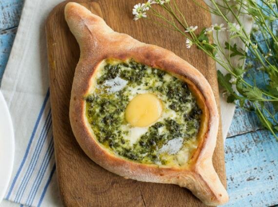 Судя по аппетитному и исключительно колоритному внешнему виду, можно подумать, что процесс приготовления "Лодочки" трудный и начинающим недоступен. Однако это совсем не так! Знаменитое грузинское блюдо хачапури по-аджарски, или "Лодочка" знакомо каждому. Однако, многие сомневаются, прежде чем приступить к приготовлению. Неуверенность вызвана абсолютно шикарным видом готового изделия, а раз "Лодочки" выглядят шикарно, значит и готовить их очень сложно, тем более новичкам в кулинарном деле. На самом деле это абсолютно не так. Даже не имея никакого опыта, можно приготовить их так, что они будут ничуть не хуже ресторанных. Попробуйте один из вариантов приготовления хачапури по-аджарски, обязательно попробуйте, не пожалеете! Для приготовления понадобится: •мука пшеничная 500г •молоко 300 мл (можно заменить водой или пополам) •яйца куриные 5 шт •дрожжи 1 пакетик (~10г) •соль,сахар по 1 ч.л. •растительное масло 4 ст.л. (можно заменить сливочным) 150г •сыр сулугуни 350г •зелень (укроп,петрушка
