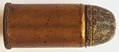 Гильза патрона из томпака, цилиндрической формы, с выступающим фланцем. В капсюльное гнездо запрессован капсюль центрального боя. Пуля свинцовая, безоболочечная, головная часть закругленной формы. В канелюру на ведущей части пули помещалась жиро-восковая смесь, снижающая свинцевание ствола. Заряд черного пороха FL массой 1,3 г разгонял пулю при выстреле до 170 м/с, сообщая ей энергию 215 Дж.