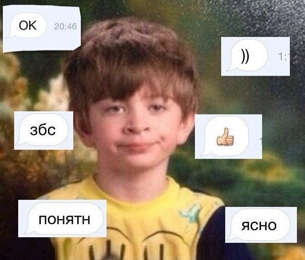 1) Pajama Kid Мем с мальчиком, одетым в пижаму со Спач Бобом ещё называют Pajama Kid. Появился он благодаря простой фотографии. Есть мнение что она была сделана в его школе. По его лицу можно догадаться, что он не доволен происходящим.(Этот мем описывает всю мою жизнь) 2)Дружко(Сильное заявление, проверять его конечно же не буду) Сергей Дружко- автор мема “Проверять я его, конечно, не буду”. Появился он после момента из его видео, после этого мем начал набирать популярность, но вскоре хайп мема прошел, как и сам Дружко. 3) «Нельзя просто так взять и войти в Мордор» Нельзя просто так взять и войти в Мордор», «Нельзя просто так взять и стать первым!», «Нельзя просто так взять и снять шляпу» — фраза из снятого в 2001 году «Братства кольца» повторялась в тысячах вариаций, и большая часть из них была о том, как этот мем всем надоел. Даже Боромир уже догадался, что на самом деле все можно. 4) ЛОЛ Еще одна калька с английского, один из старейших мемов интернета, который в 2011 году д
