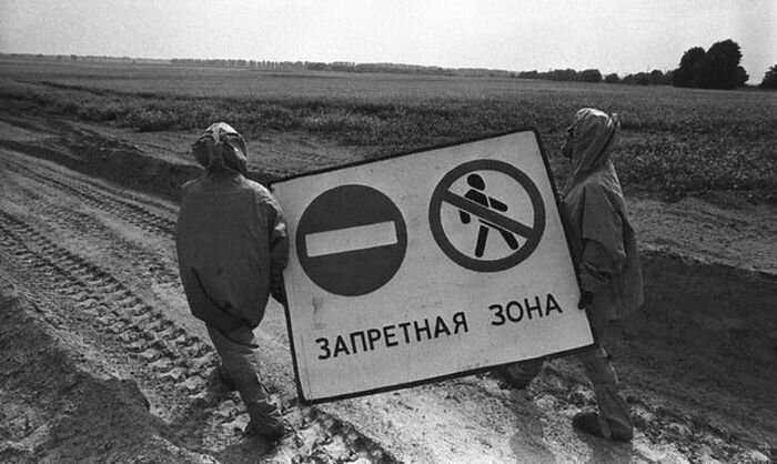 Первые фото после катастрофы. Сделаны они знаменитым фотографом Зоны Игорем Костиным. Запретная зона, Зона Отчуждения. Дальше нельзя. ОЗК в данном случае надет как комбинезон, на парах БЖД тренировались, пробовали на время облачиться в него. Весело было, когда у тебя сзади торчит непонятно что.