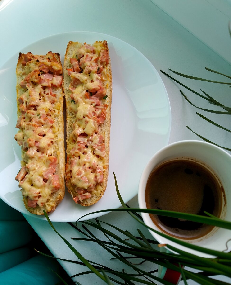 Что может быть лучше на завтрак чем сытный горячий бутерброд на хрустящем хлебе? Делается он невероятно просто и в дополнении с чашкой чая или кофе станет прекрасным началом вашего дня. Итак, ловите рецепт! Вам понадобиться: (Порция на 2 человека) · половина багета · 150 г вареной колбасы · 50 г твердого сыра · 1 ч ложка майонеза · 1 ч ложка кетчупа · зелень · соль, специи по вкусу Багет разрезаем вдоль пополам и вынимаем из него часть мякиша. Колбасу нарезаем кубиками, зелень мелко режим. В небольшой миске смешиваем майонез и кетчуп. Добавляем туда зелень, колбасу и приправляем по желанию. Подготовленные «лодочки» из багета наполняем начинкой. Сверху посыпаем все мелко натертым сыром. Отправляем бутерброды в духовку на 5-7 минут. Вместо багета по желанию можно использовать батон или тостовый хлеб, а майонез можно заменить сметаной. Приятного аппетита!
