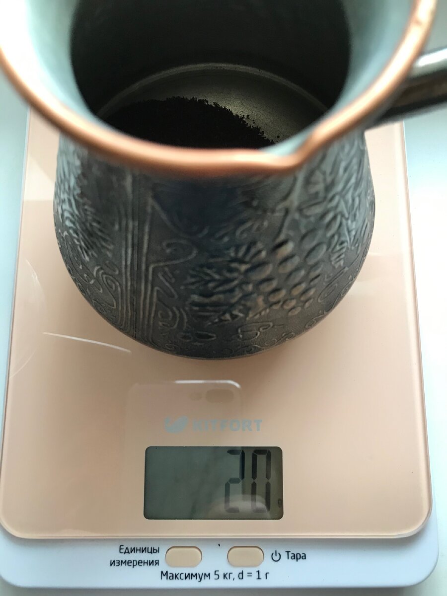 Я давно увлекаюсь приготовлением кофе дома и была уверена, что все делаю правильно, пока не попала на мастер-класс по приготовлению кофе в турке в одной из кофеен города. На мастер-классе мы попробовали приготовить кофе разных сортов и стран происхождения, результат приготовления меня очень порадовал - вкус напитка получился насыщенным, терпким без намека на неприятную горечь. Итак, приступим к приготовлению! 1. Сколько кофе нужно для достижения идеального вкуса? 1 грамм на 10 мл воды. Моя турка имеет объем 200 мл, следовательно, мне понадобится 20 грамм молотого кофе (это примерно 5 чайных ложек). Кофе получается достаточно крепким, можете добавлять меньше кофе, по ощущениям 😌 2. Температура воды, которую нужно налить в турку - очень важный фактор (знаю, что многие любят заливать кофе уже кипяченой горячей водой). Вода должна быть комнатной температуры или чуть теплее - до 37 градусов, не больше. Заливаем до горлышка турки. 3. Далее необходимо хорошо перемешать до однородности. Не с