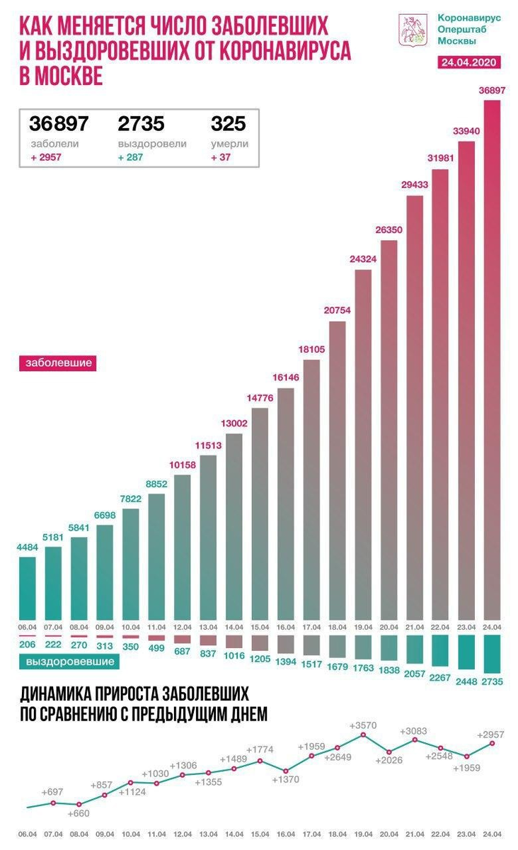 ❗️Как меняется число заболевших и выздоровевших от коронавируса на 24 апреля