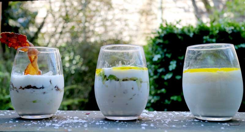 Два секрета: - Не жалейте соли. Ее вред сильно преувеличен, исключать ее полностью из рациона нельзя. - Второй момент. Оливковое масло – как вино: бывает разных оттенков вкуса, кислотности и проч. Ищите свое. Если вам показалось, что йогурт с оливковым маслом – это не вкусно, значит, у вас просто не то масло. Вам понадобятся: ШАГ 1 Бекон обжариваем или лучше запекаем в духовке до золотистости. Мякоть половины авокадо режем по диагонали вдоль и поперек. ШАГ 2 В первый стакан выкладываем половину порции йогурта. Насыпаем пармезан – тонкий слой по центру и почти сантиметр толщиной вдоль стенок – чисто для красоты. Кладем сверху оставшуюся половину йогурта, щедро льем оливковое масло, солим. ШАГ 3 В отдельной посуде смешиваем йогурт и хлопья перца чили. Выкладываем половину в стакан. Затем слой авокадо и еще слой йогурта. Украшаем несколькими кусочками авокадо, перчим, заливаем маслом и солим. ШАГ 4 По той же схеме – половину йогурта в стакан, затем крошим бекон – два кусочка, заливаем