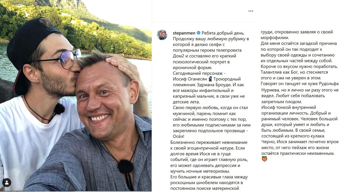Степан Меньщиков на своей странице в соц сети разместил пост про Иосифа Оганесяна. Йоси пост показался забавным, а вот Черно не очень. Ведь Степан не пожалел слов и назвал Иосифа инфантильным и капризным мальчиком, человеком занимающим второе место в семье, с крепким кулаком Черно и ослом. Но ведь ослом его считает не Степан, а подписчики, он всего лишь процитировал слова подписчиков, немного добавив "перчика". Так же он написал, что Иосиф страдает жиро фетишизмом, тем самым оскорбив чувства Саши Черно. Стёпа пообещал заменить это слова на другое. Как видим в посте он его заменил на морфофилию – любовь к очень толстым женщинам . Степан так же выложил фото Гели в обнаженном виде, ей это не очень понравилось, её дети против такой фотографии на просторах интернета и просят удалить её, но Стёпа против. Черно находится в депрессии, ведь она хочет улететь в Москву, что бы рожать там, переживая за своё здоровье. На семейном совете Саша просит купить ей билет в Москву. Алексей Купин отмечае