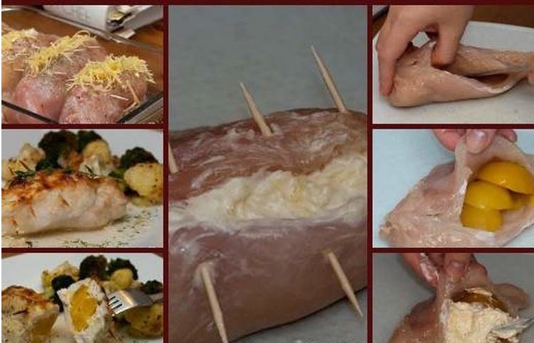 Куриные грудки, фаршированные абрикосом Ингредиенты Куриных грудки 2 Консервированные абрикосы 200 гр Твердый сыр 100 гр Чеснок 1 зубчик Сметана 3 ложки Время приготовления: 40 минут Порций: 2 Тип блюда: Второе | Кухня: Английская Куриная грудка – самая обезжиренная часть курицы и потому невероятно полезная. Рецептов ее приготовления очень много. Практически каждой хозяйке известно, как приготовить фаршированные куриные грудки. Но мало кто знает, как удачно белое куриное мясо сочетается со сладким вкусом абрикосов. Давайте, это исправим. Итак, в первую очередь приготовьте грудки для запекания: тщательно помойте и аккуратно разрежьте вдоль, создавая, таким образом, небольшой карман для начинки и немного натрите солью, приправой для курицы и перцем. Консервированные абрикосы, достаньте из банки и промокните салфеткой. Теперь их можно отправлять в заранее созданный карманчик из курицы. Приступим к приготовлению начинки-соуса. Для этого натираем сыр, выдавливаем один зубчик чеснока и