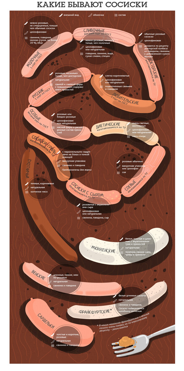 Сосиски были известны человечеству довольно давно. С незапамятных времен люди мелко-мелко рубили мясо и субпродукты, добавляли пряности и упаковывали в чисто отмытые кишки. Так выглядели предки колбас, сосисок и сарделек. Иоганн Лагер же просто изобрел рецепт сосисок, который мы используем по сей день при изготовлении этого блюда. То есть – в начале XIX века в Вене появились современные сосиски из свинины и говядины – назывались они франкфуртскими. Так как изобретатель их незадолго до того переехал из Франкфурта. И произошла очень забавная путаница. Те сосиски, к которым мы с вами привыкли, в Вене называли франкфуртскими, а во всех остальных городах – венскими. И именно венские сосиски – наследницы тех, что были изобретены в 1805 году. А рецептами подавляющего большинства наших сосисок: «Молочных», «Любительских» и «Докторских» - мы обязаны Анастасу Микояну и его приказу о производстве новых мясных продуктов 1936 года. Именно после него появились советские сосиски, чьи рецепты были зап
