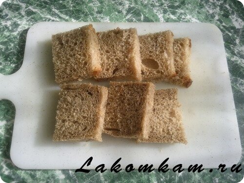 Закуска «Бутербродики с копченым лососем». Приготовление. Нарезать хлеб толщиной 0,5-1 сантиметр. Обрезать корочки, чтобы получились прямоугольники.