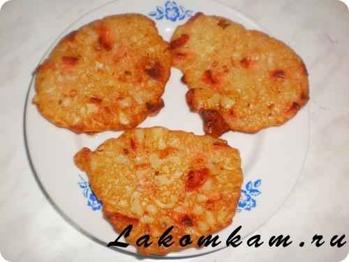 Перемешиваем и ложкой выкладываем на разогретую сковороду и жарим как оладьи.