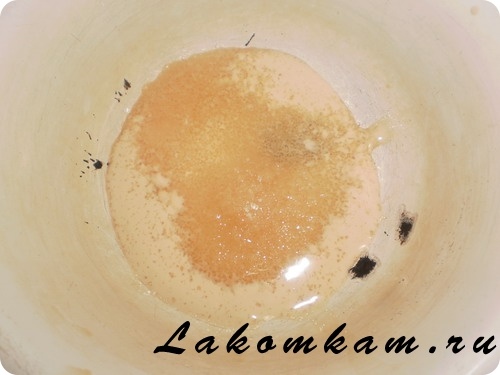Закуска «Беляши классные». Приготовление. Дрожжи растираем с сахаром.