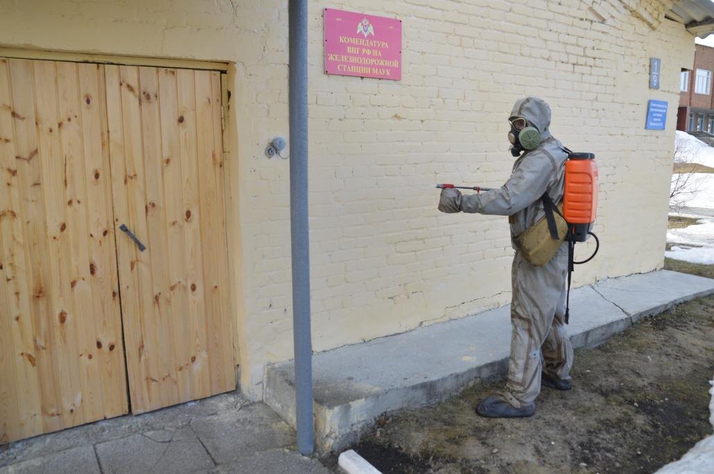 В рамках работы по противодействию распространению новой коронавирусной инфекции в войсках Уральского округа Росгвардии службой РХБ защиты реализуются барьерные мероприятия для недопущения заболевания личного состава округа. В частности, силами личного состава подразделений РХБ защиты в оперативно-территориальном объединении развернуты 42 площадки специальной обработки. Организовано проведение специальной обработки военной и специальной техники после выполнения служебных задач силами нарядов по парку, водительского состава и специалистов службы РХБ защиты. С целью создания благоприятных условий для личного состава соединений и воинских частей организовано проведение дезинфекции помещений караулов, КПП и мест несения боевой службы. Проводится дезинфекция служебных, казарменных помещений и тыловых территорий военных городков. За текущую неделю обработано более 3 000 единиц техники, свыше 1,5 кв.км территорий воинских частей и собственных объектов.