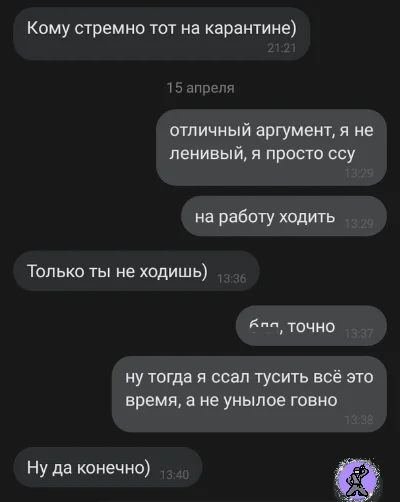 Самоизоляция – на практике дело не очень весёлое. Больше всего может не хватать весёлого разговора, и остаётся только виртуальное общение. А для меня общение – будь то реальное или сетевое – должно быть приправлено шутками для всеобщего удовольствия. Что-ж, начало положено, и можно переходить к шуткам в адрес девушки. Но я не люблю, когда юмор граничит с оскорблениями. Нужно или уметь вовремя реагировать, или делать подводку к шутке. На этом я с вами прощаюсь. Делитесь этой статьёй с друзьями, ставьте лайк👍, подписывайтесь на канал и берегите себя!