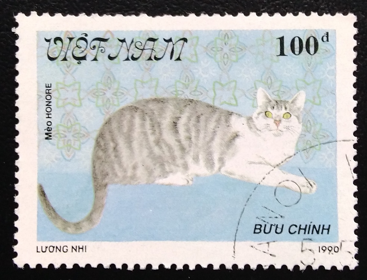 Любимые питомцы, кошечки, в миниатюрах, на почтовых марках Вьетнама 1990 года выпуска, №№ 1306 – 1311. Кошка — домашнее животное, одно из самых популярных. Кошка — млекопитающее семейства кошачьих, отряда хищных, ранее домашнюю кошку нередко рассматривали, как отдельный биологический вид. С точки зрения современной биологической систематики домашняя кошка является подвидом лесной кошки. Являясь одиночным охотником на грызунов и других мелких животных, кошка — социальное животное, использующее для общения широкий диапазон звуковых сигналов, а также феромоны и движения тела. В настоящее время в мире насчитывается около 200 пород, от длинношёрстных (персидская кошка) до лишённых шерсти (сфинксы), признанных и зарегистрированных различными фелинологическими организациями. Перебирая марки своего детства, для обзоров, что-то навеяло вновь начать их собирать (коллекционировать). Почему «собирать» на первом месте – на данном этапе по-другому это не назовешь. Впоследствии может быть больше