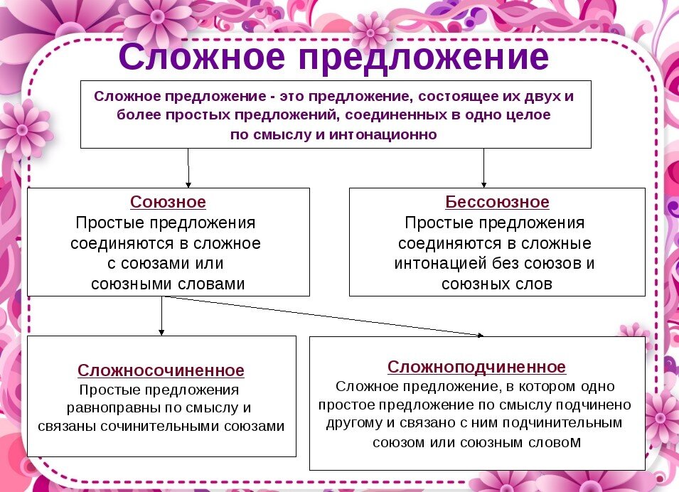 Сложные предложения делятся на союзные (сложносочинённые и сложноподчиненные) и бессоюзные.