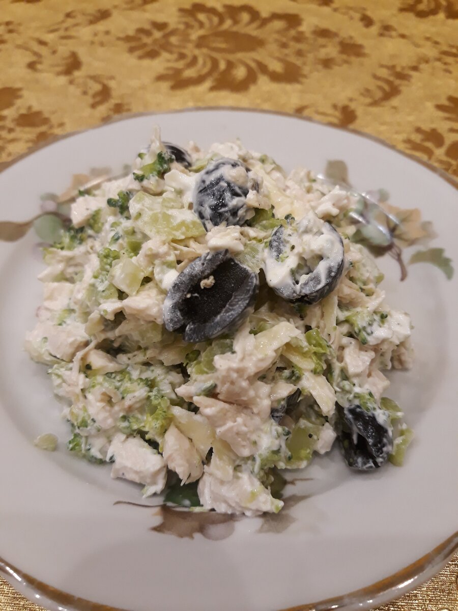 Этот салат - бомба!!! Если Вам надоели все привычные салаты, обязательно попробуйте этот простой и такой вкусный рецепт. Все продукты в нем отлично сочетаются. Нам потребуется: * Брокколи 600 гр. * Одна куриная грудка * Маслины одна банка * Сыр 80 гр. * Сметана 100 гр. Брокколи и куриную грудку отвариваем (по отдельности) и нарезаем небольшими кусочками. Добавляем маслины (режем пополам), тертый сыр и заправляем сметаной. По желанию можно добавить специи. Такой салатик идеально подходит для ужина. Приятного аппетита!!! Оставляйте комментарии, подписывайтесь на мой канал.