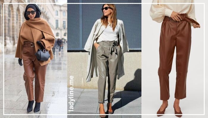 Кожаные брюки актуальная в новом сезоне вещь, которая поможет создать трендовый, стильный и лаконичный образ, как для особого мероприятия, так и для повседневного лука. В данной статье вы узнаете, как правильно составлять весенние образы, главной изюминкой которых будут кожаные брюки. Базовая однотонная водолазка + оверсайз куртка-рубашка + кожаные штаны черного цвета прямого кроя + белые массивные кроссовки — стильный street-style look. Расклешенные, насыщенного рыжего цвета, кожаные брюки отлично сочетаются с оверсайз клетчатым жакетом. Утонченные женственные босоножки с тонкими ремешками на небольшом каблуке идеально завершат стильный и современный весенний look. Кожаные брюки карго стильного терракотового цвета можно носить с базовой белой рубашкой, бежевым классическим пальто и стильными остроносыми лакированными ботильонами. Укороченные черные кожаные брюки + однотонная водолазка базового бежевого цвета + жакет цвета “пыльная роза” + остроносые черные туфли — стильный образ, к