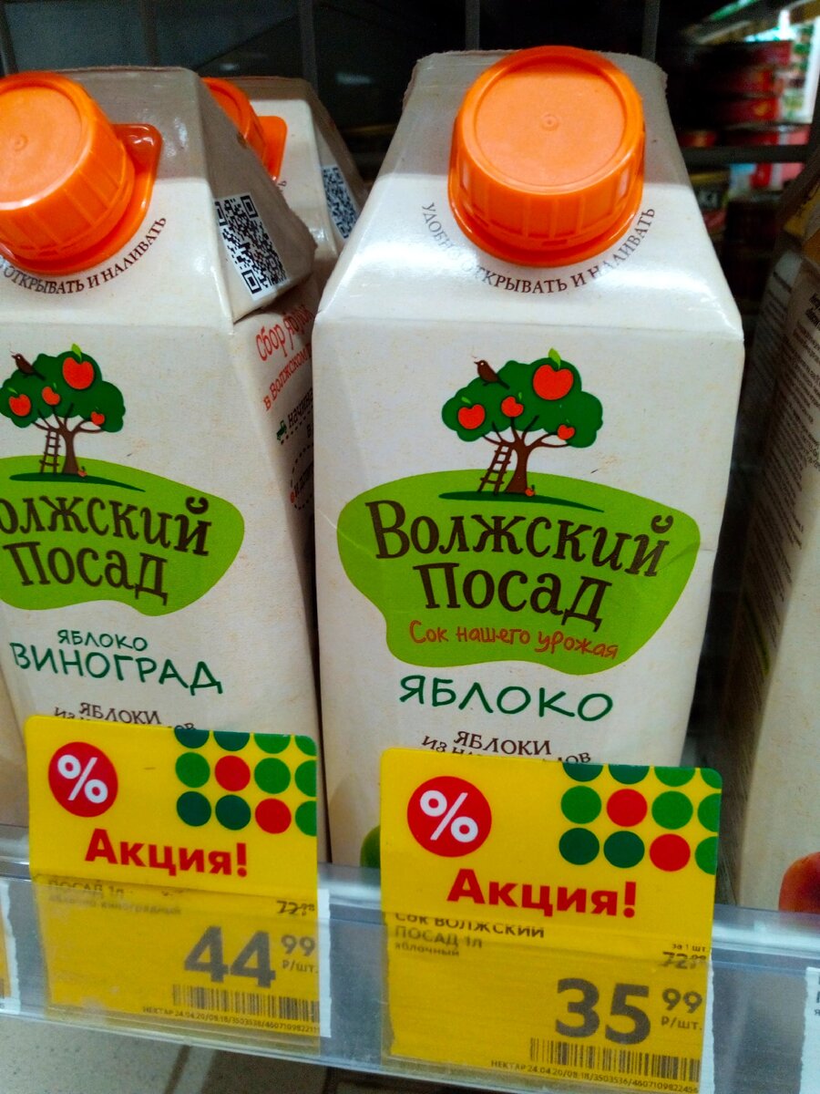 Доброго времени суток. Сегодня в Пятерочке обнаружила очень хорошие скидки. В основном, этот товар был на сезонной акции, видимо остатки решили распродать по очень выгодной для нас цене. Вот сок "Волжский посад" яблочный 35 рублей за литр, красота Я любительница кофе, давно смотрела именно на этот, новинка от Якобса, можно заваривать в кипятке, естественно, не думая, купила пачку, уже даже попробовала, вкус супер, завтра, если ещё будет, куплю пачку, вторую... Ребенку я взяла Несквик за 55 рублей в бумажной упаковке, надеюсь, понравится, мне цена очень понравилась))) Закончились все чистящие средства, хотелось что-то подешевле и нашла: за 69 рублей, довольно густой, идеально Муж любит всякие напитки, ему взяла березовый сок, за 59 рублей не жалко Обнаружила шоколад Киткат за 47 рублей, он всегда дорогой, пусть будет на черный день))) А этот я люблю: Риттер спорт за 63 рубля взяла себе любимой Ну и этот себе любимой... За 39 рублей можно, такая цена часто бывает на Альпен голд, но раз я