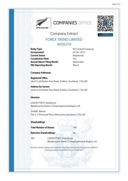 Юридически Павел Крымов является главой Skopalino Trading, а Владимир Лозовицкий и дроп Manlai ZHANG директорами FOREX TREND.