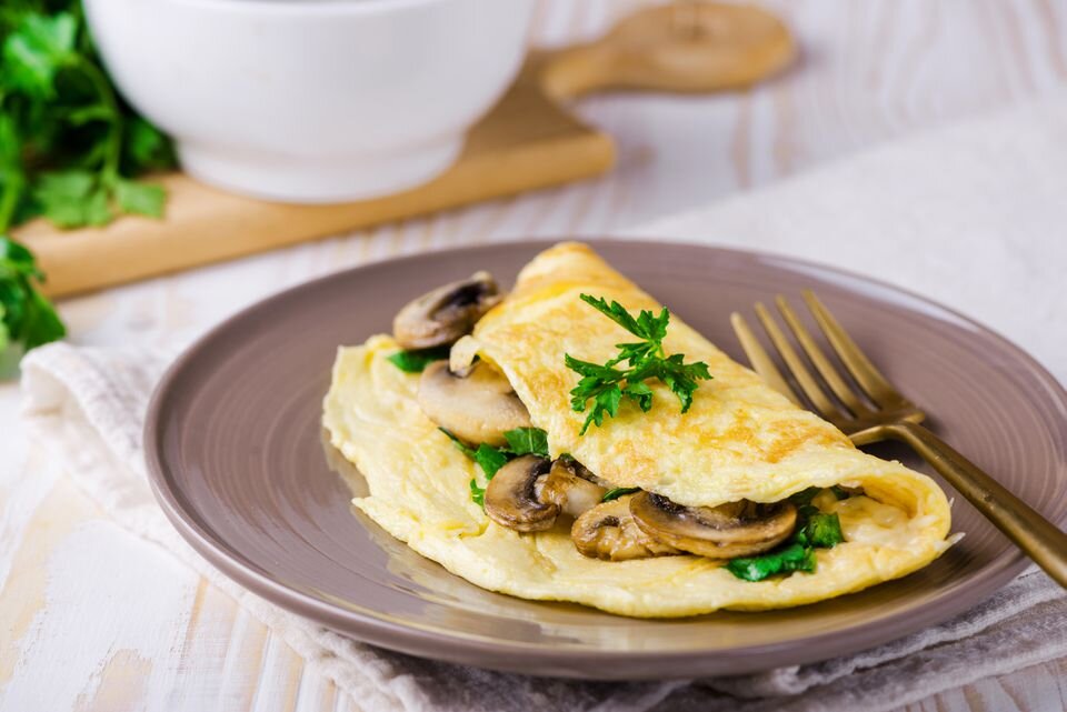 Ингредиенты: Соберите ингредиенты Разбейте яйца в стеклянную миску и взбивайте, пока они не станут бледно-желтого цвета. Нагрейте противень с антипригарным покрытием с толстым дном на среднем огне. Добавьте масло и дайте ему растаять. Добавьте молоко к яйцам и приправьте по вкусу солью и перцем. Затем возьмите свой венчик и сильно взбейте. Если вам тяжело, то вы можете использовать электрический блендер или миксер с насадкой для взбивания. Когда масло в сковороде станет достаточно горячим, и зашипит, залейте яйца. Не мешайте! Дайте яйцам готовиться в течение минуты или до тех пор, пока дно не начнет застывать. С помощью термостойкого резиновой лопаточкой аккуратно протолкните один край яйца в центр сковороды, одновременно наклоняя сковороду, чтобы оставшееся жидкое яйцо просочилось внизу. Повторите с другими краями, пока не останется жидкости. Теперь ваши яйца должны напоминать ярко-желтый блин, который должен легко скользить по антипригарной поверхности. Теперь аккуратно переверните