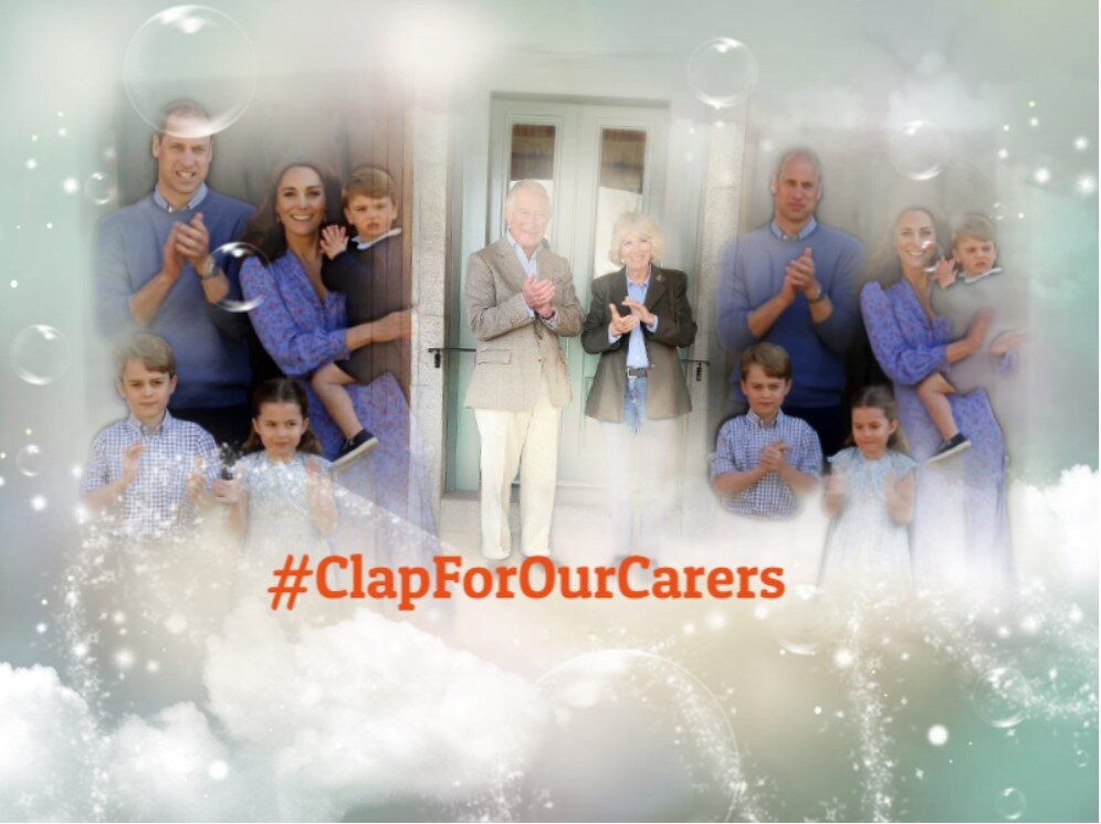 Вчера герцоги Кембриджские порадовали не только серией прекрасный снимков принца Луи, сделанных Кэтрин в честь его вчерашнего Дня Рождения, но семья также записала видеопослание- апплодисменты в поддержку медицинских работников, которые трудятся на благо других. Пару недель назад видеоапплодисменты были только от деток: Джорджа, Шарлотты и Луи. Вчера же, 23 апреля, вся семья в полном составе, да еще и одетая в милые, в тон друг другу, синие наряды, вышла во двор, чтобы апплодисментами