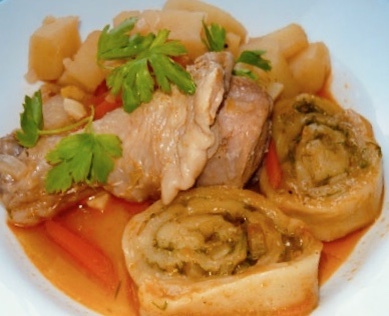 Очень простое в исполнении и вкусное блюдо. Ингредиенты: Способ приготовления: Замесите тугое тесло из одного яйца, столовой ложки масла и муки. Курицу нарежьте крупными кусками, лук и морковь нарежьте. Обжарьте курицу на растительном масле в течение нескольких минут, затем добавьте лук и морковь и жарьте ещё минут 5-7. Картофель почистите, нарежьте и отправьте к курице с овощами. Добавьте соль, перец и специи, тщательно перемешайте. Убавьте огонь до слабого, добавьте куриный бульон и тушите, пока будете готовить штрудли. Тесто раскатайте в тонкий пласт, смажьте маслом и сверните в тугой рулет, нарежьте его на маленькие рулетики, сантиметра 1,5-2 толщиной. Выложите полученные рулетики поверх картофеля с курицей, накройте крышкой и тушите на более сильном огне минут 10. Подавайте с зеленью и сметаной. *** КУШАТЬ ПОДАНО! Приятного аппетита! *** Если вам понравился этот рецепт, поставьте лайк. 😉 *** Подписывайтесь на мой канал здесь, буду рада всем.🙃 грибыкухняпостедарецептыкушать по