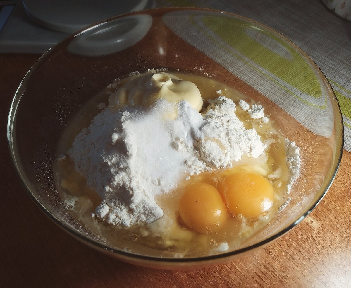 Для теста: Мука - 400гр. Майонез - 2ст.л Растительное масло - 3ст.л Яйца - 2шт. Соль - 1ч.л Сахар - 1ч.л Сода - на кончике ножа Вода - 200мл. Муку по ходу замеса теста нужно будет добавлять Для начинки: Грудка куриная - 200гр Шампиньоны - 200гр Картофель - 170гр Специи по вкусу Лук кончился, поэтому без него, но лучше конечно его добавить Кунжут и яйцо - для смазывания и посыпки Тесто у меня осталось по этому я испекла пирог. Рецепт здесь Приготовление: 1. Все ингредиенты теста перемешиваем в одной глубокой миске и замешиваем тесто в течении 5-10 минут, походу добавляя муку. 2. Пока тесто стоит готовим начинку. Обжариваем картофель 3. Добавляем грудку 4. Затем грибы 5. Все перемешиваем, добавляем специи. Жарим минут 7, затем убавляем огонь и оставляем тушить до готовности картофеля. 6. Раскатвваем большой пласт 7. Выкладываем его в круглую форму так, чтобы были бортики. Выкладываем начинку, краями накрываем ее, сверху выкладываем ещё один небольшой пласт теста и скрепляем края. Фото