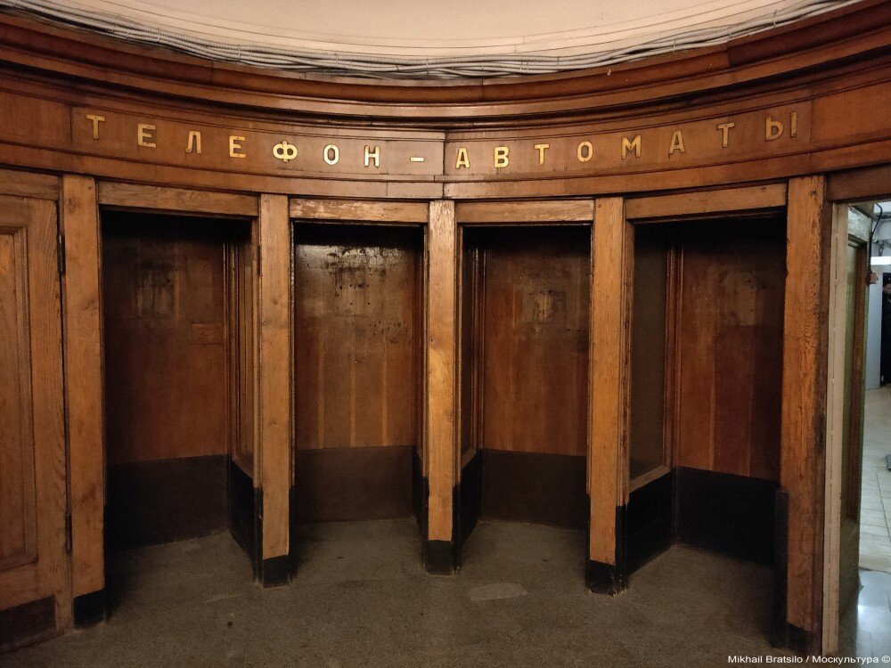 На станции метро "Смоленская" Арбатско-Покровской линии сохранились старинные телефонные будки. Прекрасный блок телефонов, сделанный из дерева, великолепно вписан в полукруглый обходной коридор. Станция в данный момент закрыта. С 1953 года надо сделать первый ремонт. Её полностью отреставрируют. Телефонный блок также обещают оставить. Фоторафию я сделал за день до закрытия станции на реставрацию.