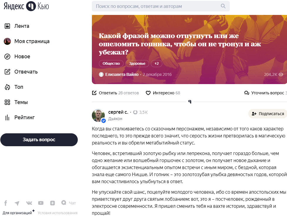 В данной статье, лично меня, выбесили заумные словечки аля "экзистенциальный" Ну куда это... Дзен как обычно, 1000 символов воды и, скорее всего, 100 по теме заголовка... Не дочитывайте до конца эту воду и не комменте, плиз, они на этом и живут! Но помните одно - поцелуете гопника - вам езда, рулю и седлу...