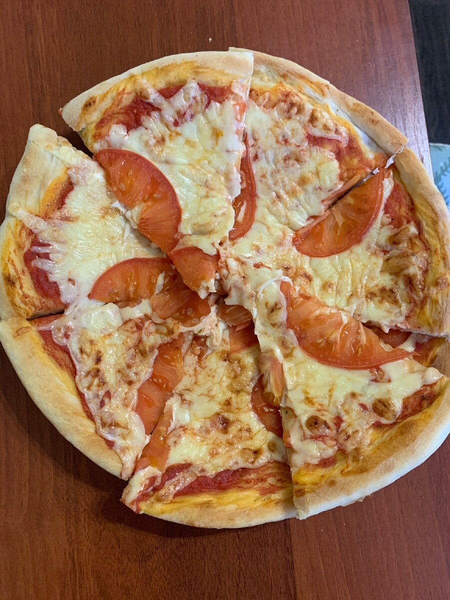 в моей книге рецептов есть много вариантов теста для пиццы, сегодня хочу поделиться именно этим. Как раз на днях семья попросила пиццу Маргариту. Итак начинаем! 180 мл воды 7 гр сухих дрожжей 1 ч.л соли 1,5 ч.л сахара 300 гр муки 3 ст.л масла оливкового В тёплую воду( не горячая, а именно тёплая) добавить дрожжи, сахар и перемешать. Нашу опару Поставить в тёплое место, лучше накрыть полотенцем, примерно на 15-20 минут. Она должна увеличиться в 2 раза. в опару добавить соль, масло, муку и замесить тесто. И опять убрать его в тёплое место примерно на 1 час. За это время можно все приготовить для начинки пиццы. наблюдайте за тестом, может и за минут 40 оно поднимется и с ним можно будет работать. тесто раскатать и далее уже вообще наполнение пиццы. У нас Маргартта
