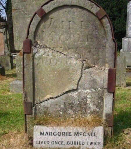 История повествует, что в 1705 году, после продолжительного нахождения в коме, скончалась молодая ирландка Марджери МакКолл. В ночь после похорон "расхитители гробниц" местного разлива эксгумировали её тело в надежде разжиться драгоценностями. В момент, когда воришки попытались отрезать палец, с которого не удавалось снять кольцо, Марджери пришла в себя.