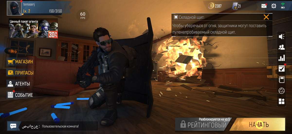 Жаль, что я не играл в Rainbow Six Siege, это бы значительно облегчило игру в Area F2 (ios, игра бесплатная). Понимание того что тебя могут убить не только в проеме, но и сверху (через потолок) снизу (через пол), взорвать стену, и т.д. поначалу пугает. Это очень зависимая от тактики игра, отлично подходит для работы в команде. Поскольку мне игра понравилась во всех отношениях, серьезных минусов не будет. Плюсы: Графика. Графика замечательная, без переизбытков, телефон вытаскивает игру на 60 FPS при ультра графике. Возможности настройки большие, поэтому многие смартфоны справятся с игрой с хорошим показателем кадров. Оформление. Действительно интересный интерактивный фон в основном меню. Сочетает в себе полезность и красоту. Управление. Первое на что я обращаю внимание, даже не сыграв ни в один матч – настройка управления. И если я вижу безобразие, которое нельзя подстроить под себя, проект для меня перестает быть интересным и играбельным. Тут всё в порядке, в лучших традиц
