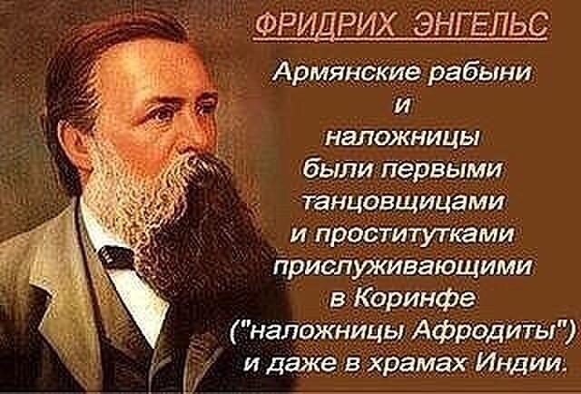 И что же мы видим. Ритуальная проституция армянок (тем более античная), даже если бы таковая и имела место быть, Маркса и Энгельса интересовала в последнюю очередь (с семейными и интимными делами и у того и у другого было всё в полном порядке).