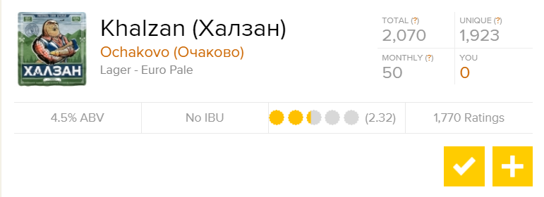 Уверен для многих людей пиво Халзан ассоциируется с тем "интересным" рейтингом "Лучшего светлого пива", который Роскачество любезно предоставило нам в преддверии Чемпионата мира по футболу в 2018 году. Тогда пиво Халзан Светлое заняло второе место, уступив лишь пиву Amstel. При том что оценка в Untappd у него всего лишь 2,32.