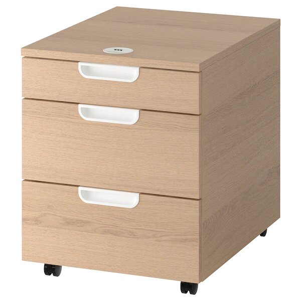 ГАЛАНТ Тумба с ящиками на колесах, дубовый шпон, беленый, 45x55 см