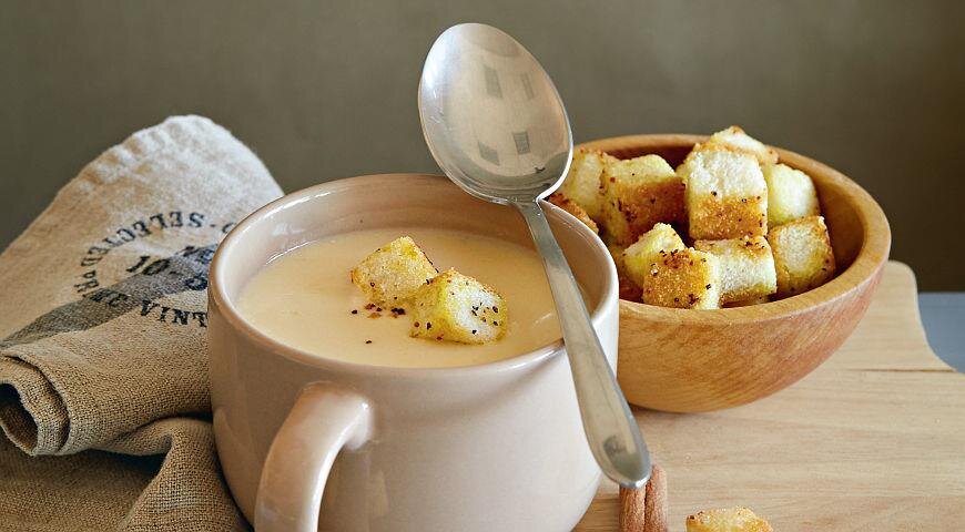 ИНГРЕДИЕНТЫ ПОШАГОВЫЙ РЕЦЕПТ ПРИГОТОВЛЕНИЯ Шаг 1Для гренок обрежьте у хлеба корки и нарежьте мякиш кубиками со стороной примерно 1,5 см. Сбрызните растопленным сливочным маслом и обжарьте либо на сковороде, либо в несильно разогретой духовке до золотистой корочки. Шаг 2Влейте пиво в кастрюльку, добавьте сахар, гвоздику и разломанную палочку корицы. Снимите несколько полосок цедры с лимона и также добавьте в пиво. На среднем огне доведите до кипения, снимите пену, уменьшите огонь, варите 3–5 мин., удалите пряности. Шаг 3Взбейте сливки с желтками. Тонкой струйкой, все время перемешивая венчиком, влейте желтковую смесь в слабо кипящее пиво и варите на минимальном огне, пока суп не загустеет. Шаг 4Подавайте пивной суп горячим, всыпав в каждую тарелку по горсти гренок. Приятного аппетита!